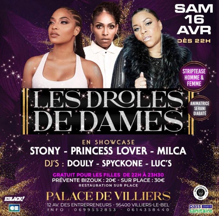 C’est un véritable évènement dans le monde de la musique antillaise : LES DROLES DE DAME avec Milca, Princesse Lover et Stony en showcase le 16 Avril 2022 à la mythique salle de réception du Palace Des Villiers.